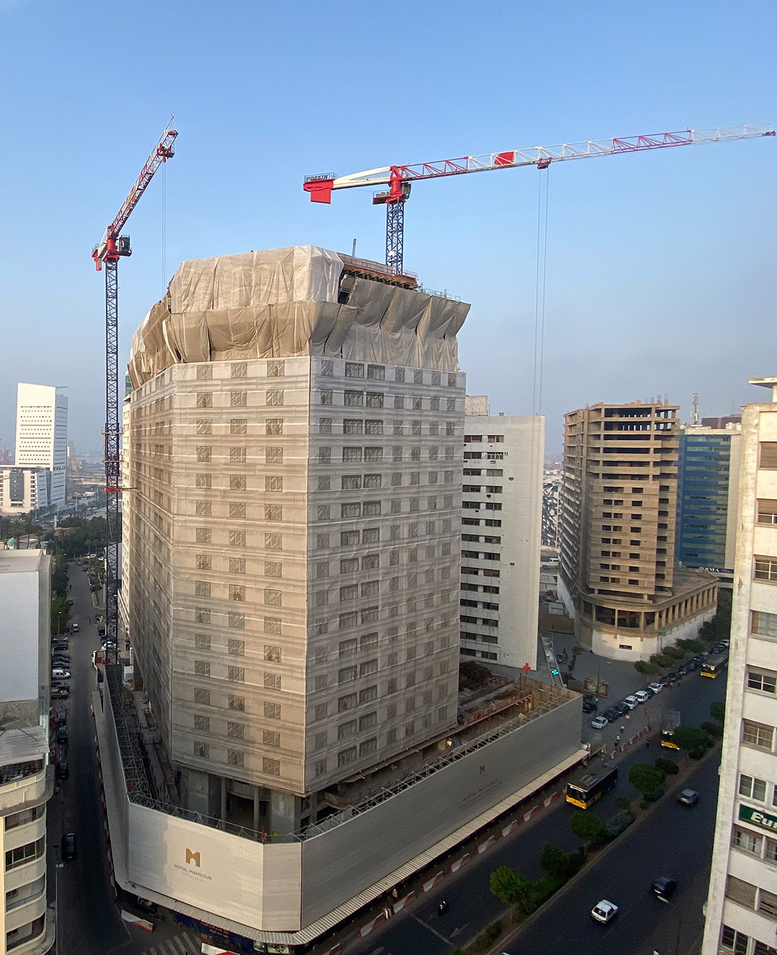 Une progression impressionnante du Royal Mansour Casablanca. Le futur hôtel atteindra bientôt sa hauteur définitive sous le regard d’Elqui Films et de Benjamin en ce début d’automne.